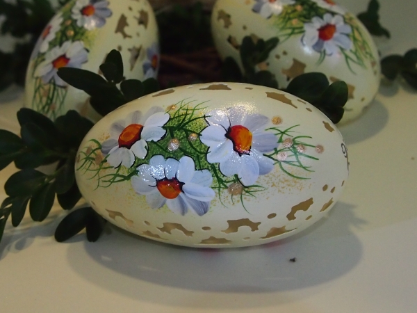 Romantyczny rumianek - pisanka wielkanocna ażurowa, wykonana na wydmuszce gęsiego jajka.